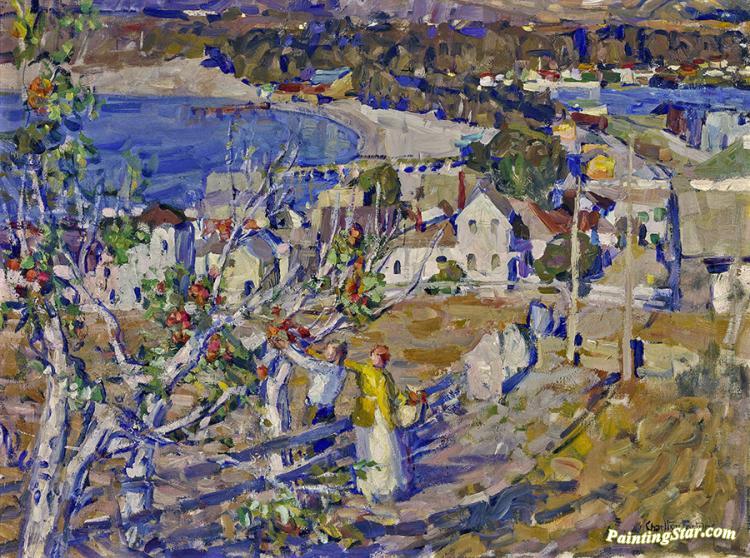Picking Apples (above The Town). C. 1920, Art Painting by E. Charlton Fortune
