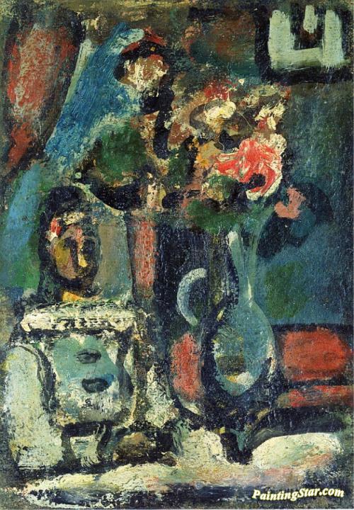 Pierrot with Bouquet, Art Painting by Georges Rouault