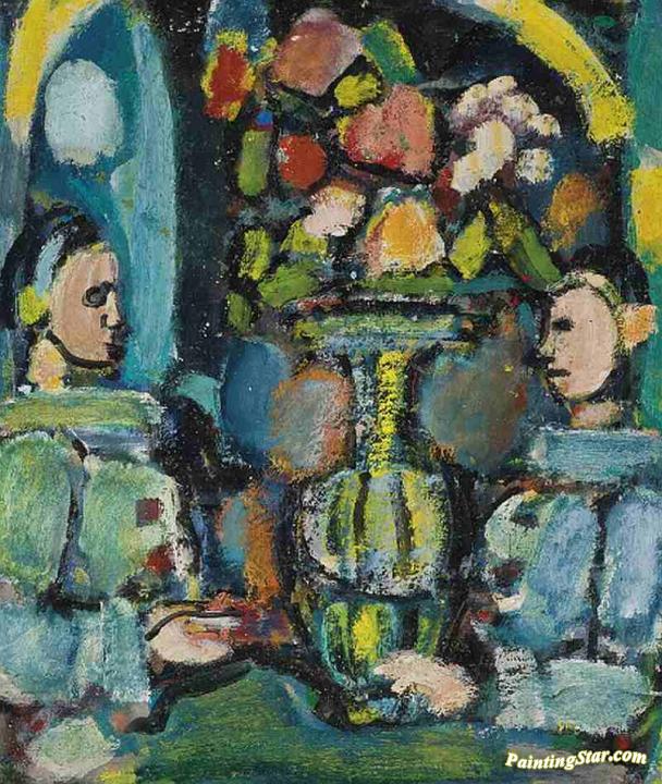Pierrots with a Bouquet, Art Painting by Georges Rouault
