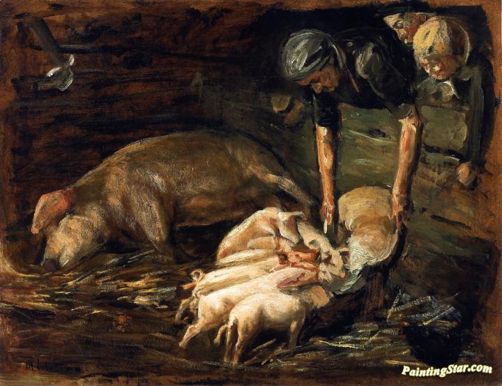 Pig Sty, Nursery, Art Painting by Max Liebermann