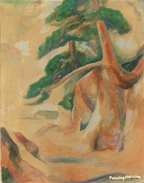 Pine Trees Growing On A Coastline Embankment, Art Painting by Thomas Hart Benton
