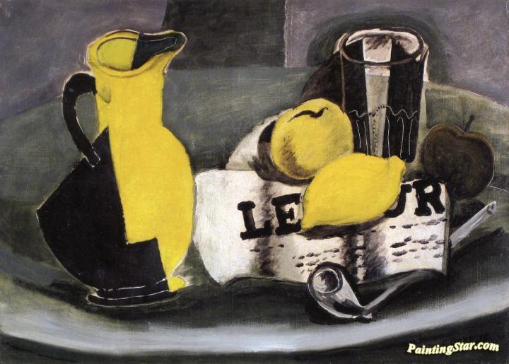 Pitcher and Newspaper, Art Painting by Georges Braque