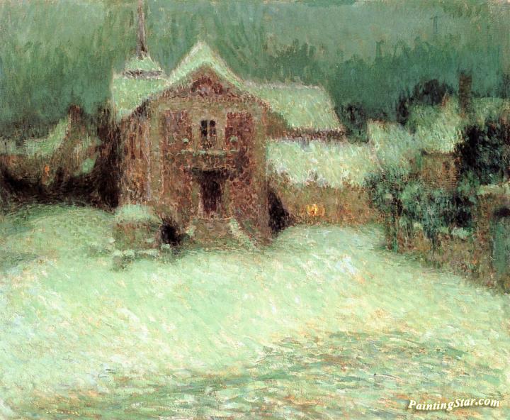 Plaza Under Snow, Gerberoy, Art Painting by Henri Le Sidaner