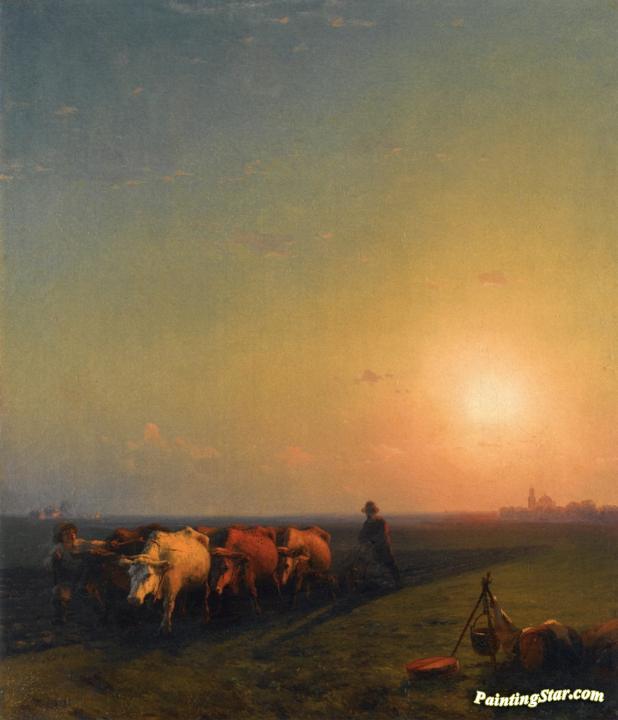 Ploughing the Fields, Crimea, Art Painting by Ivan Constantinovich Aivazovsky