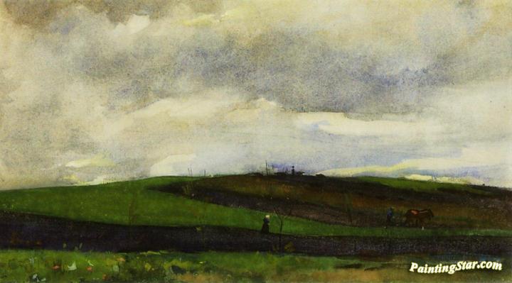 Plowing farmer in undulating landscape, Art Painting by Floris Arntzenius