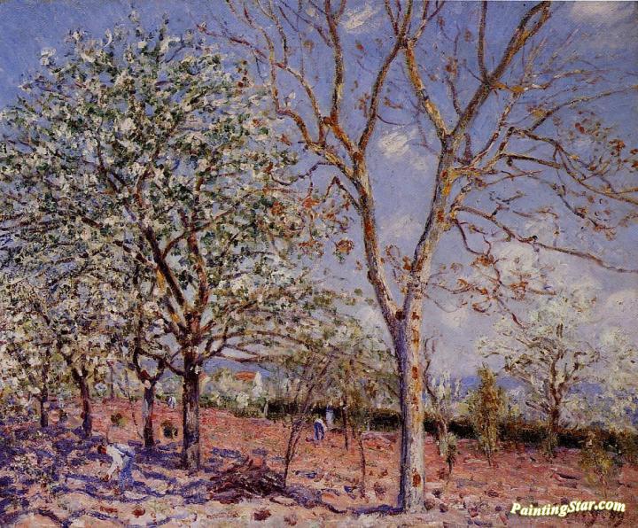 Plum and Walnut Trees in Spring, Art Painting by Alfred Sisley