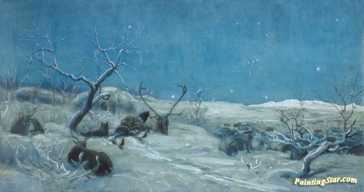 Polarnatt Med Same Och Renhjord, 1898-1898, Art Painting by Johan Tiren