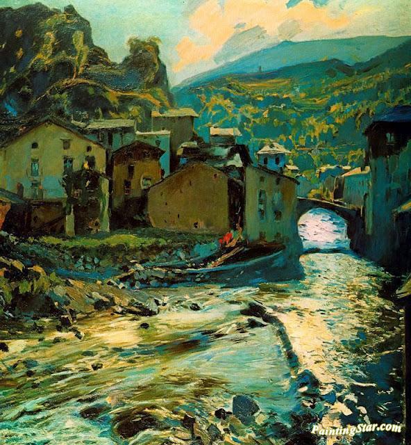 Pont De Les Escaldes, Art Painting by Joaquin Mir Trinxet