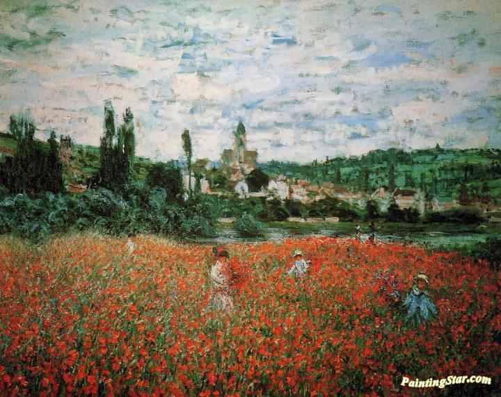 Poppy Field near Vetheuil, Art Painting by Claude Oscar Monet