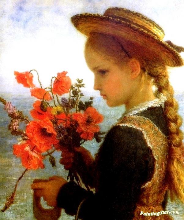 Poppy girl, Art Painting by Karl Wilhelm Friedrich Bauerle