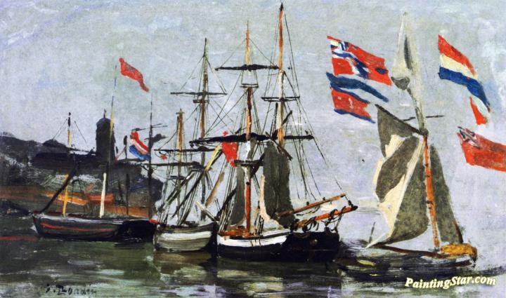 Port, Banners, Art Painting by Eugène-Louis Boudin