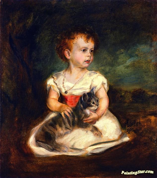 Portrait of a Child with Cat, Art Painting by Fritz von Lenbach