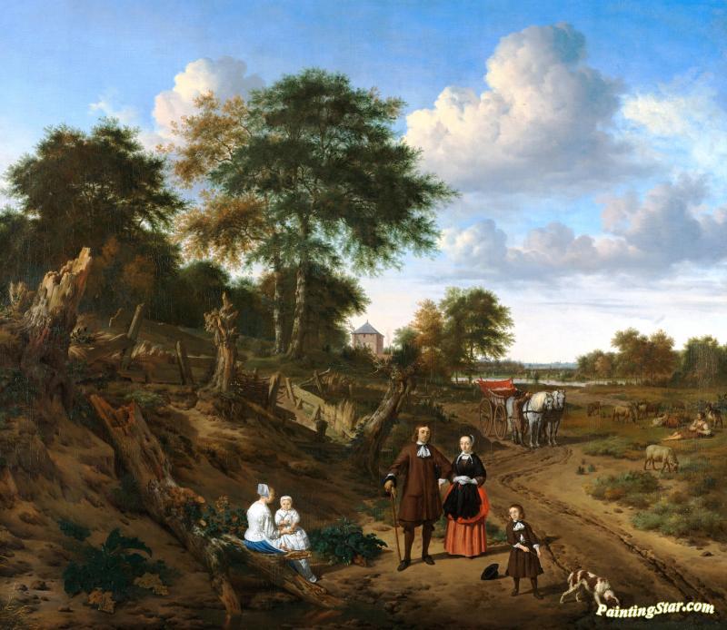 Portrait Of A Couple With Two Children And A Nursemaid In A Landscape, Art Painting by Adriaen van de Velde