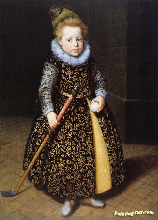 Portrait of a Four-Year Old Boy with Club and Ball, Art Painting by Paulus Moreelse