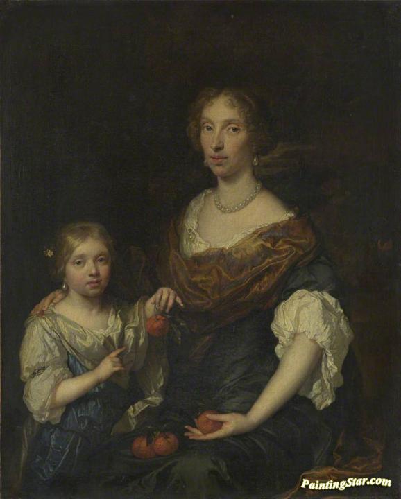 Portrait of a Lady and a Girl, Art Painting by Caspar Netscher