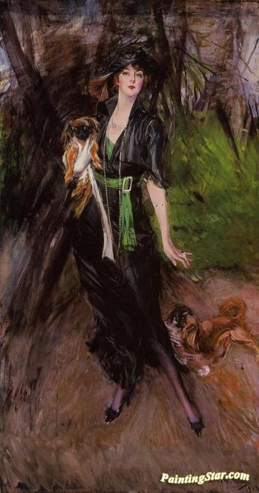 Portrait Of A Lady, Lina Bilitis, With Two Pekinese, Art Painting by Giovanni Boldini