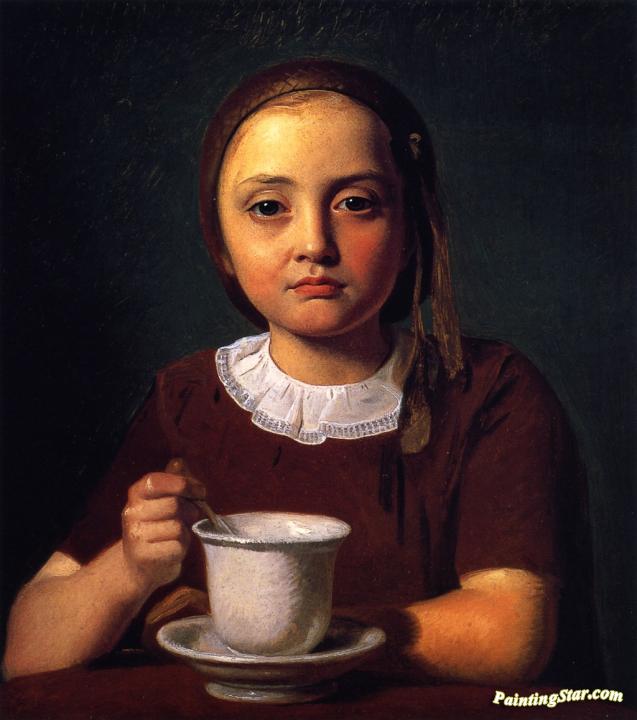 Portrait Of A Little Girl, Elise Købke, With A Cup In Front Of Her, Art Painting by Constantin Hansen