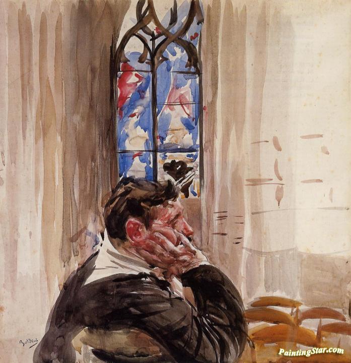 Portrait Of A Man In Church, Art Painting by Giovanni Boldini