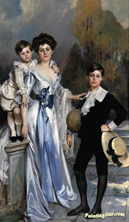 Portrait of a mother with her children in the garden, Art Painting by Francois Flameng