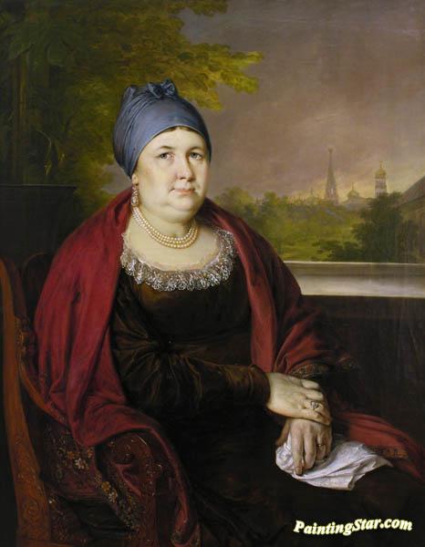 Portrait Of A Woman In Blue Headscarf, Art Painting by Vasily Tropinin