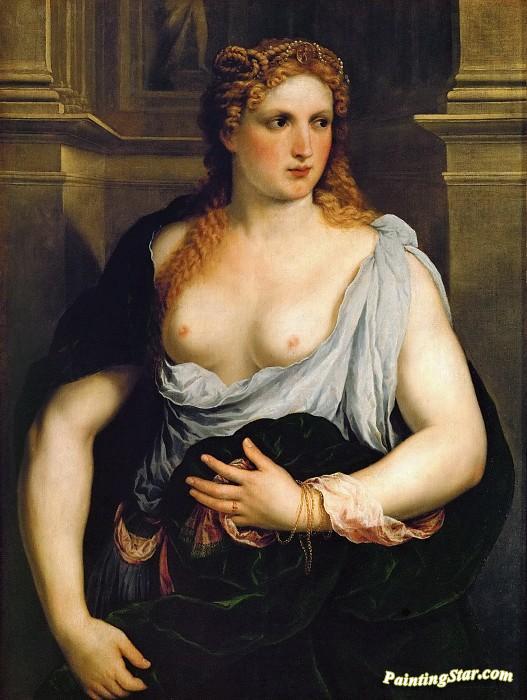 Portrait of a woman in green mantle, Art Painting by Paris Bordone