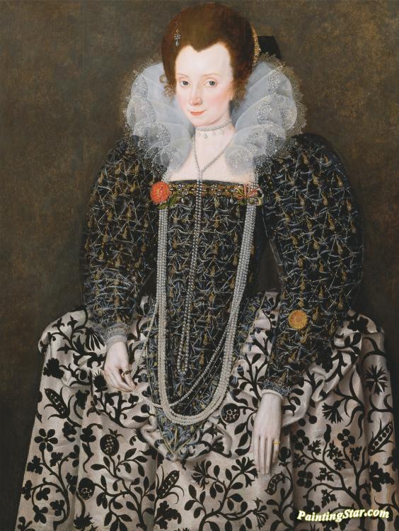 Portrait Of A Woman(traditionally Identified As Mary Clopton Born Waldegrave, Of Kentwell Hall, Suffolk), Art Painting by Robert Peake the elder