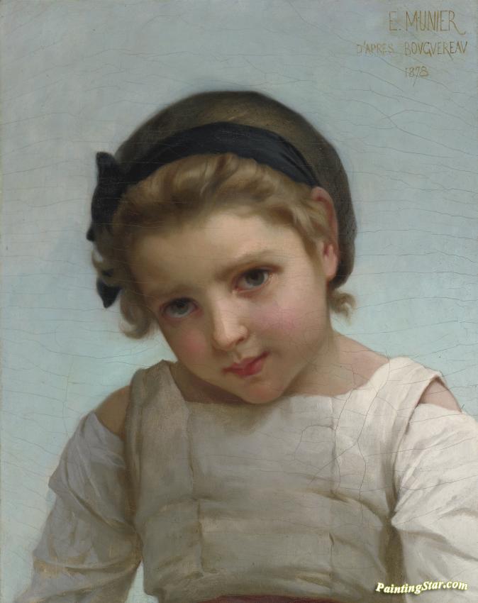 Portrait Of A Young Girl (after William Bouguereau's Sur Le Rocher), Art Painting by Emile Munier