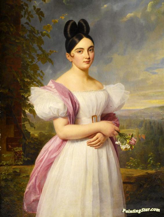 Portrait Of A Young Woman In A Landscape, Art Painting by Ferdinand Georg Waldmuller
