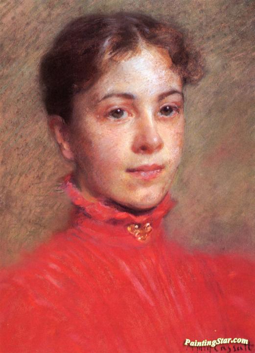 Portrait Of A Young Woman In A Red Dress, Art Painting by Mary Cassatt