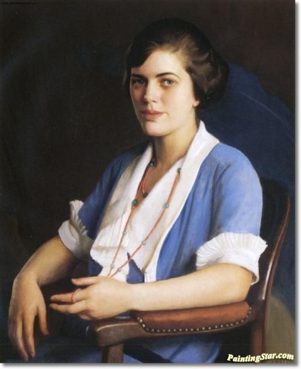 Portrait Of A Young Woman In Blue, Art Painting by William Mcgregor Paxton