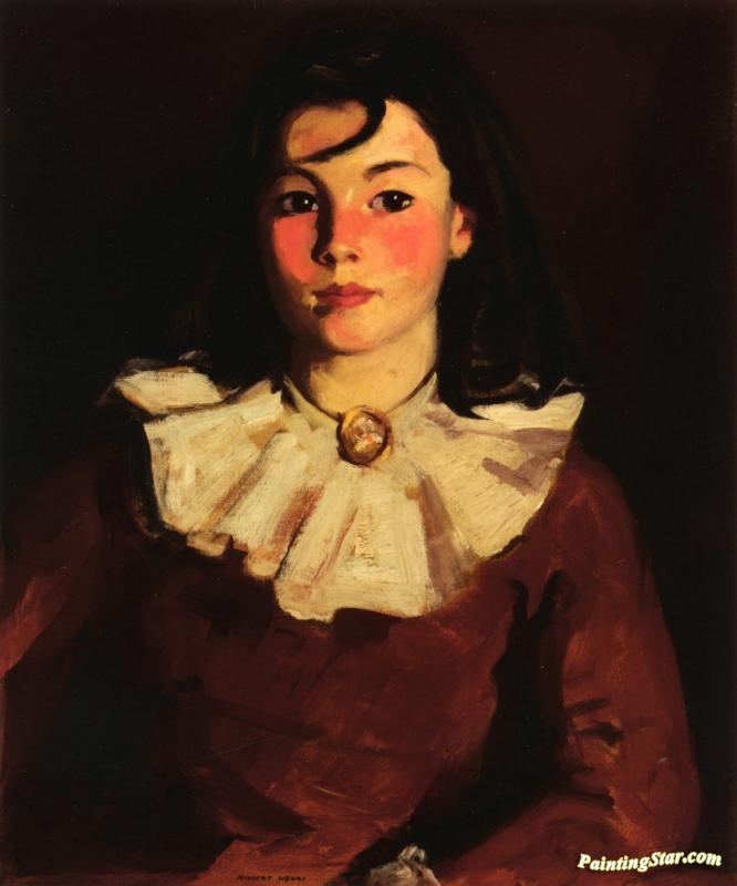 Portrait Of Cara In A Red Dress, Art Painting by Robert Henri