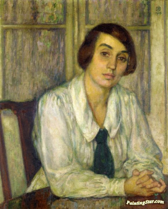 Portrait of Elizabeth van Rysselberghe, Seated, Her Hands on the Table, Art Painting by Theo van Rysselberghe