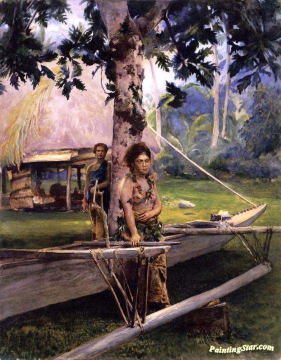 Portrait of Faase, the Taupo, or Official Virgin of Fagaloa Bay, and Her Duenna, Samoa, Art Painting by John La Farge