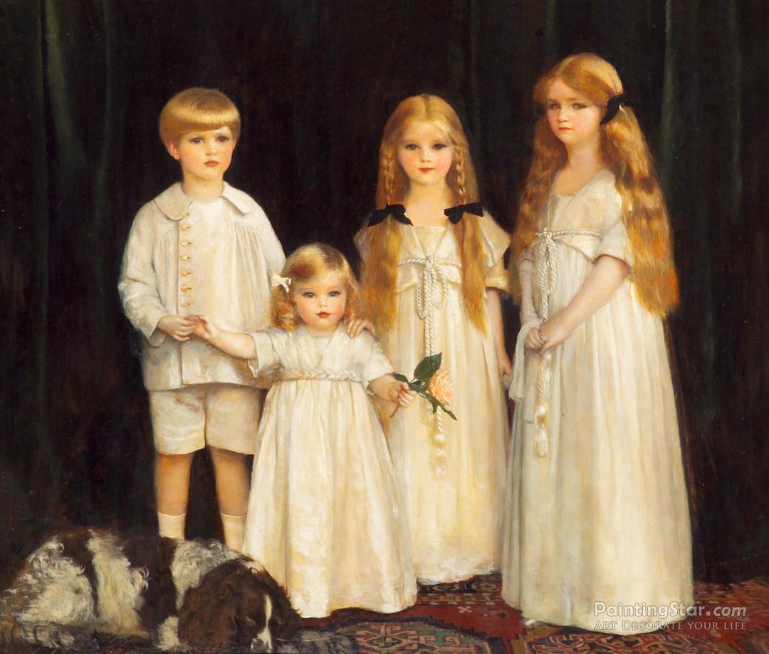 Portrait Of Fraunces, Beatrice, James And Synfye, Children Of James Christie, Esq, Art Painting by Frank Cadogan Cowper