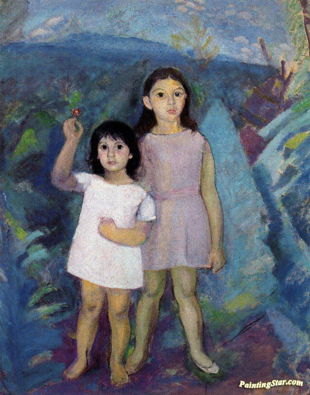 Portrait Of Graciela And Beatriz In A Landscape, Art Painting by Daniel Vazquez Diaz