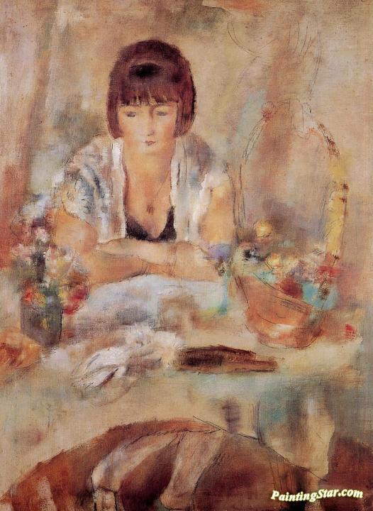 Portrait of Lucy at a Table, Art Painting by Jules Pascin