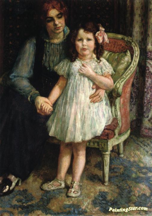 Portrait of Madame Goldner=Max and Her Daughter Juliette, Art Painting by Theo van Rysselberghe