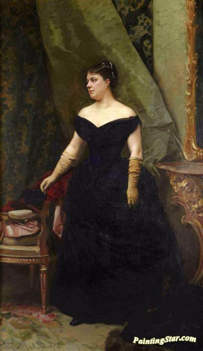 Portrait of madame Isaac Hirsch Kann, née Koenigswarter, Art Painting by Raimundo de Madrazo y Garreta