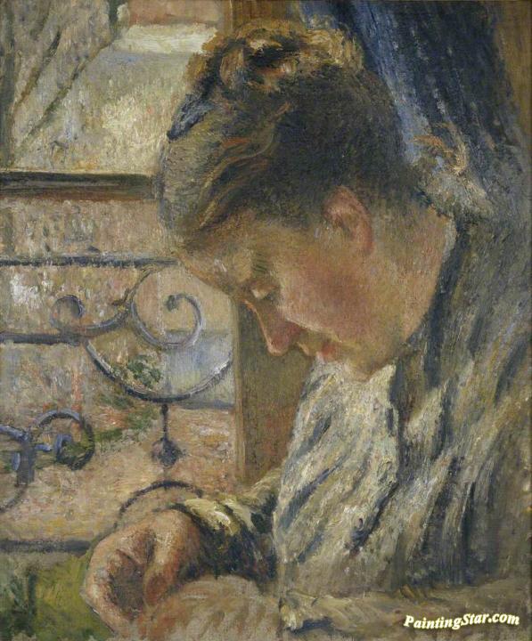 Portrait of Madame Pissarro Sewing near a Window, Art Painting by Camille Pissarro
