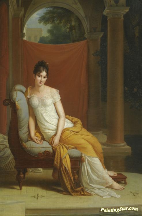 Portrait Of Madame Recamier (1777-1849),seated In A Classical Interior, Art Painting by Alexandre Evariste Fragonard