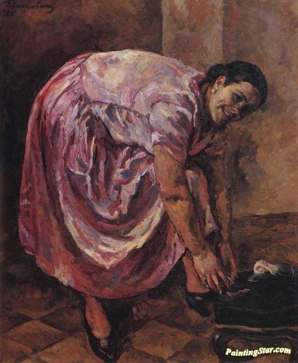 Portrait of Natalia Konchalovsky, the artist's daughter, in pink dress, Art Painting by Pyotr Konchalovsky