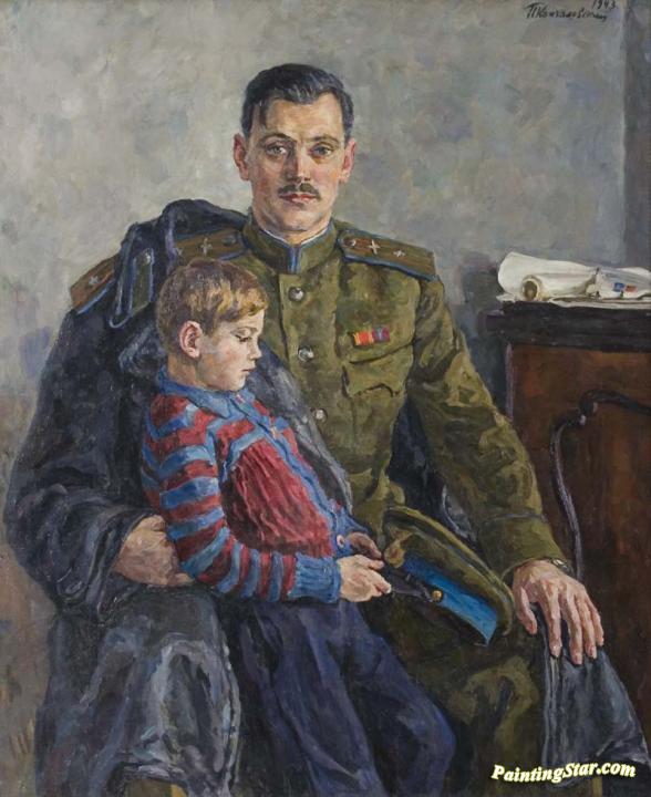 Portrait of Poet Sergei Mikhalkov with his son, Art Painting by Pyotr Konchalovsky