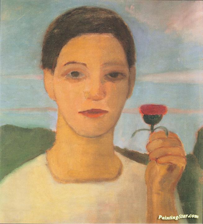 Portrait of sister Herma with artichoke flower in his raised hand, Art Painting by Paula Modersohn-Becker