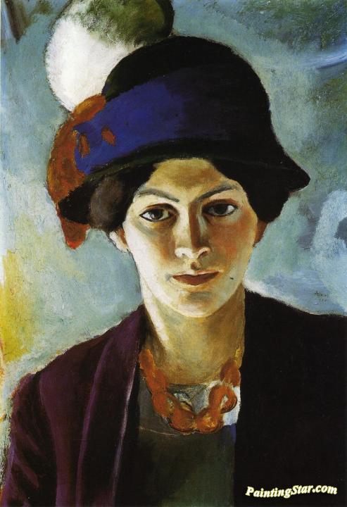 Portrait of the Artist's Wife with Hat, Art Painting by August Macke
