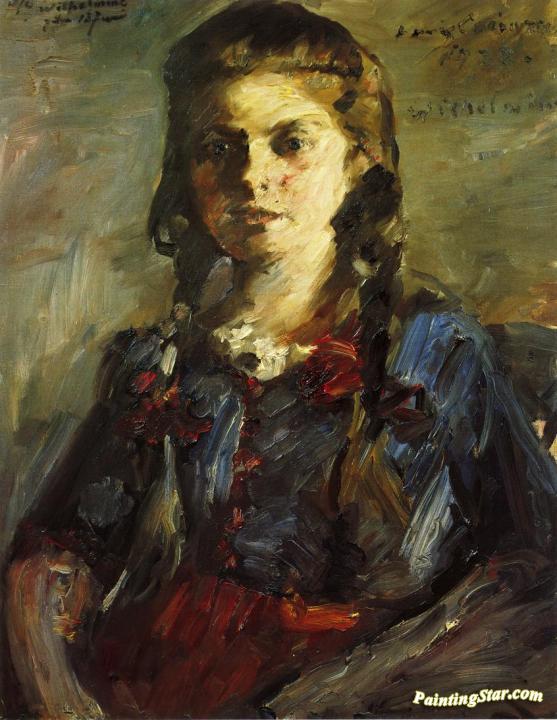 Portrait of Wilhelmine with Her Hair in Braids, Art Painting by Lovis Corinth