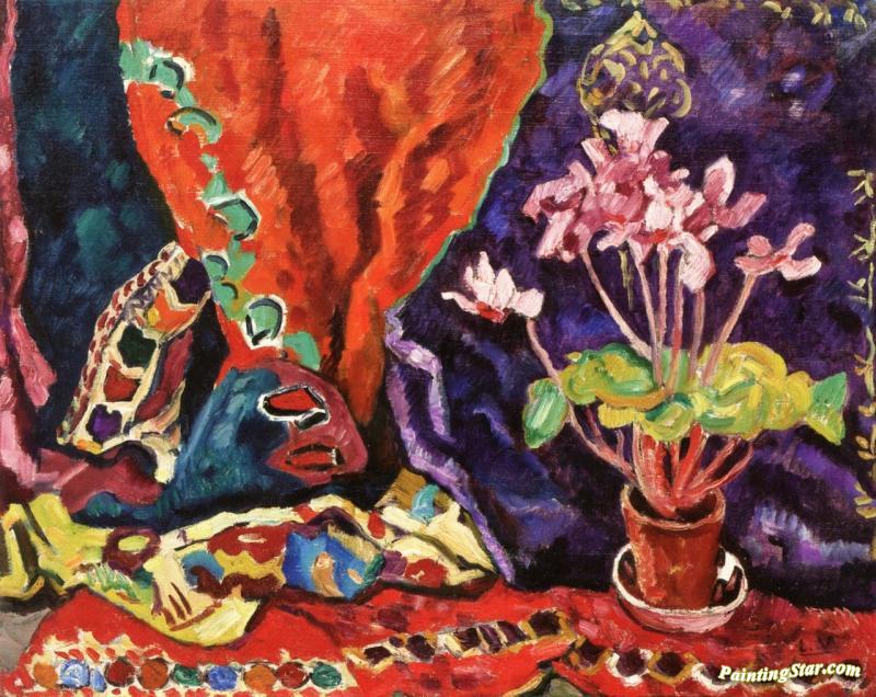 Pots Of Cyclamens With Curtains, Art Painting by Louis Valtat