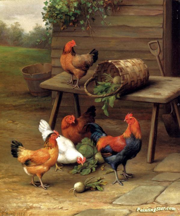 Poultry In A Barnyard, Art Painting by Edgar Hunt