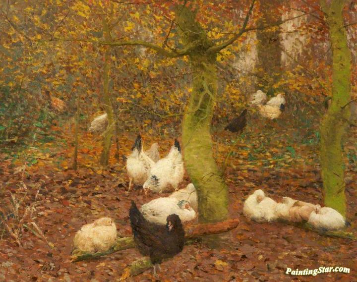 Poultry in a Wood, Art Painting by Emil Claus