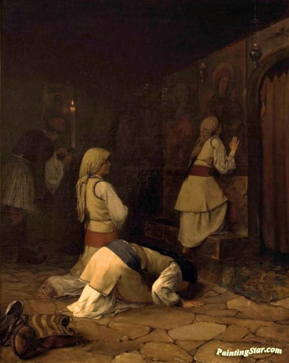 Praying In Greek Church, Monparnas, Art Painting by Theodoros Ralli