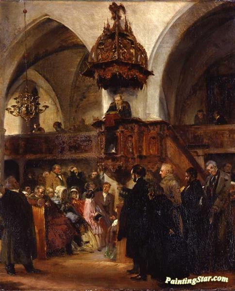 Preaching At The Altar Of The Kloster Church In Berlin, Art Painting by Adolph von Menzel